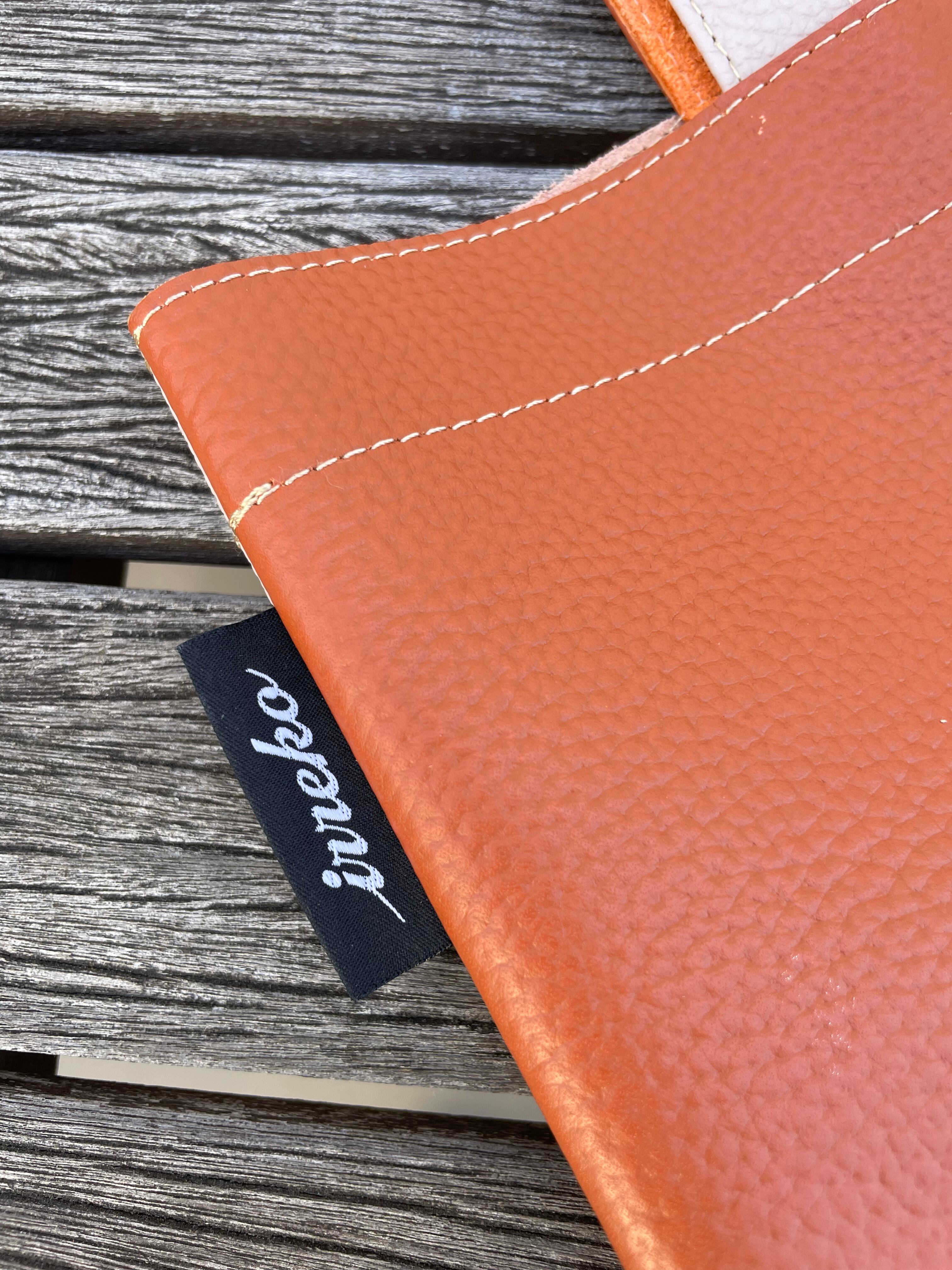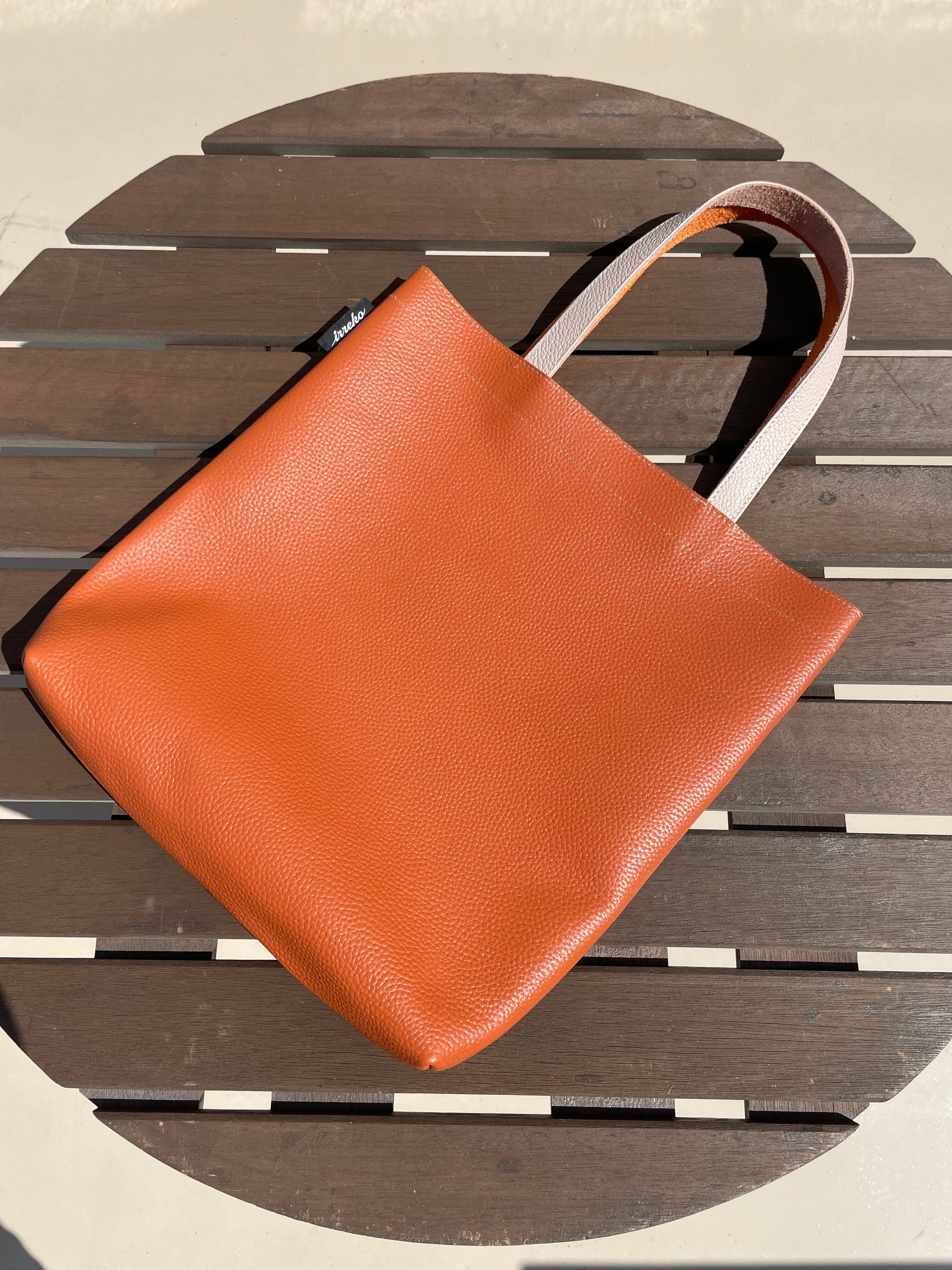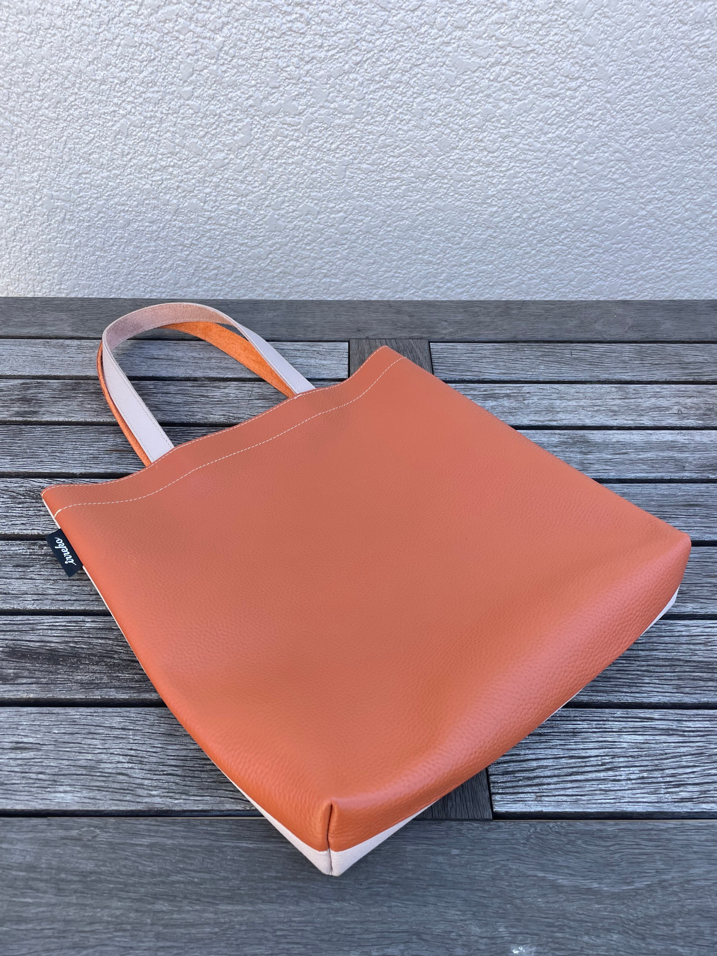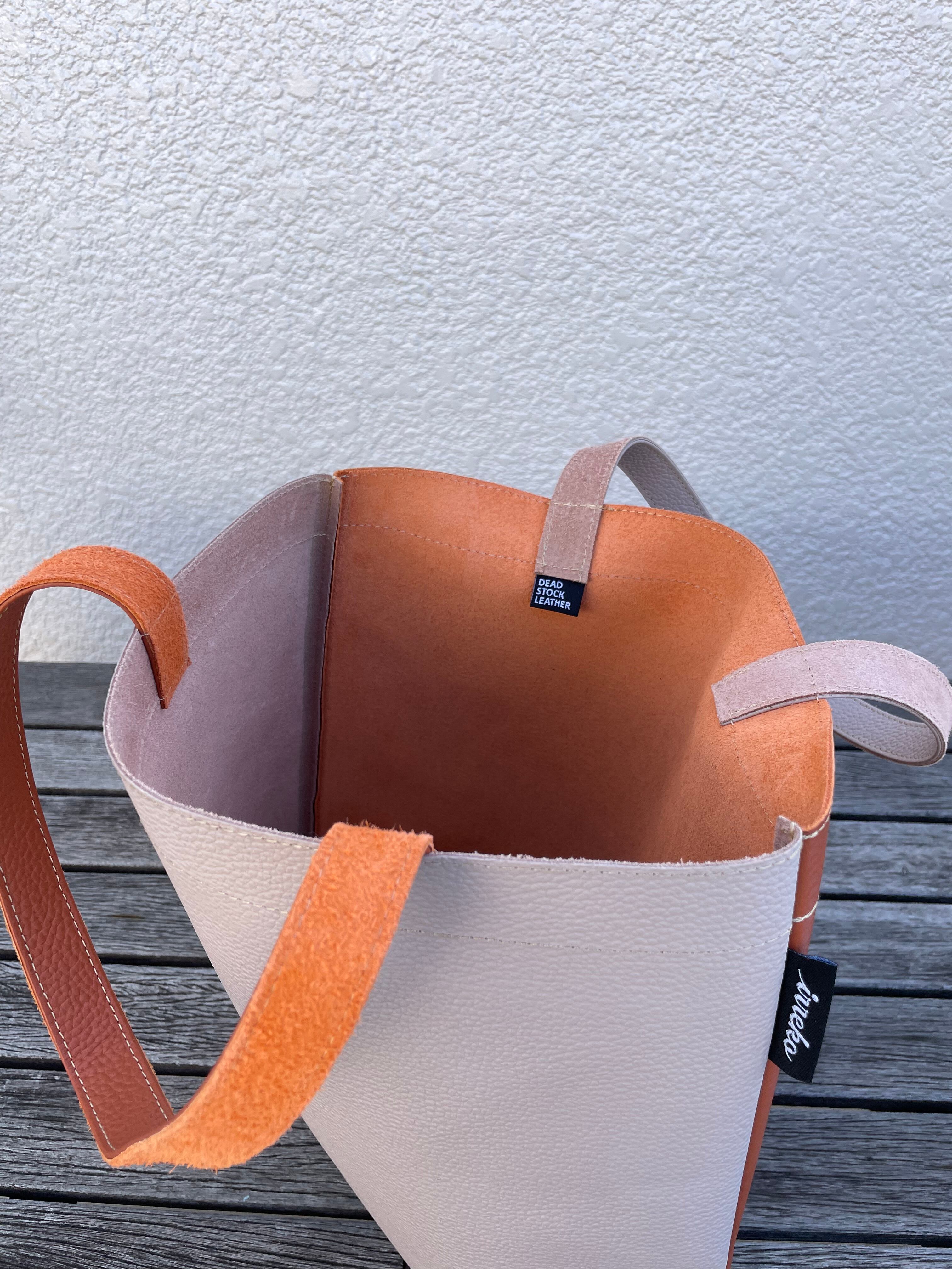 ハリと艶のあるオレンジブラウンとの革質の違いも楽しめます。