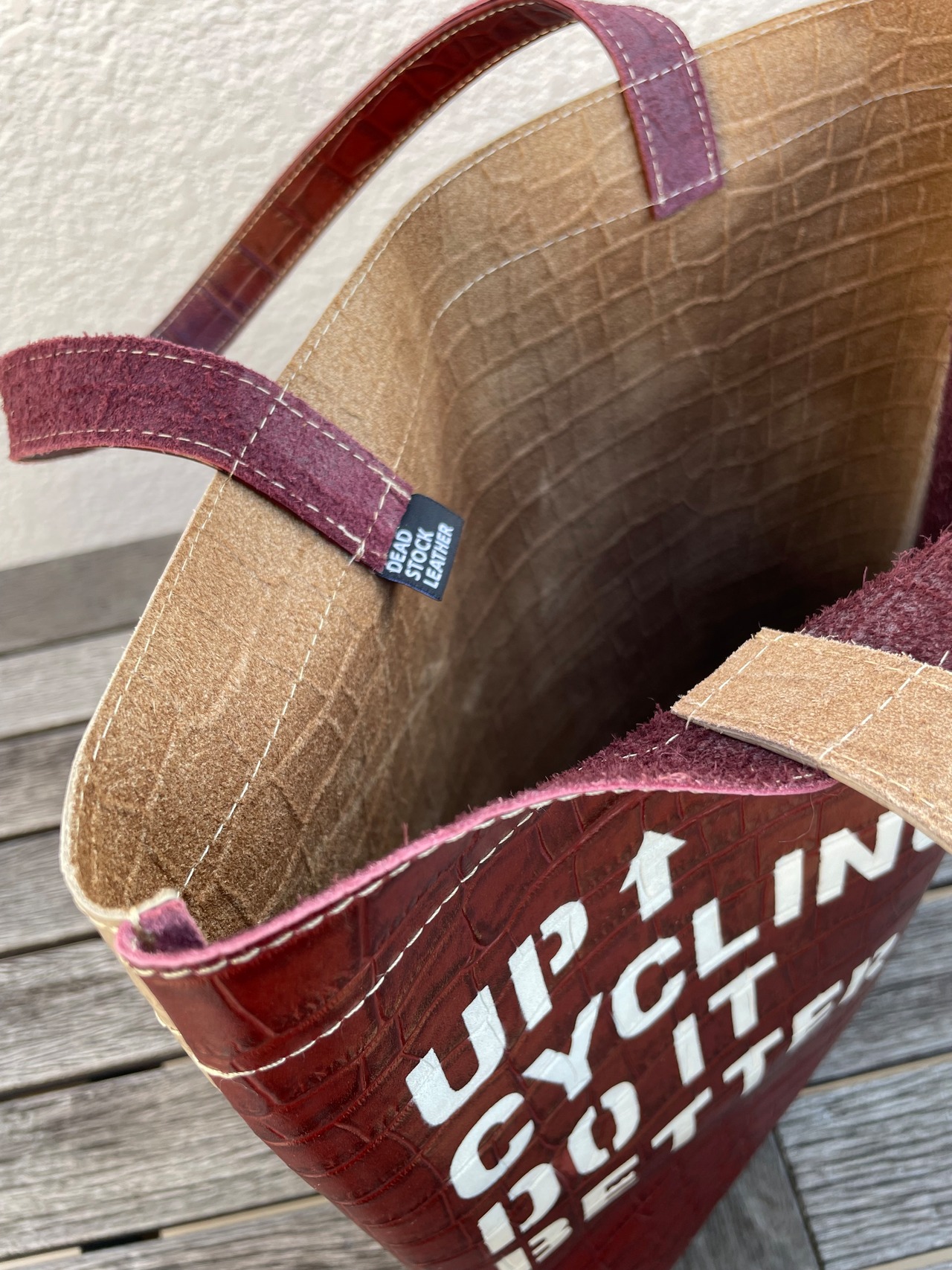 ・この製品は、縫製を行なった後、ステンシルを使って手作業でスプレーペイントしています。このため仕上がりは1点1点異なります。